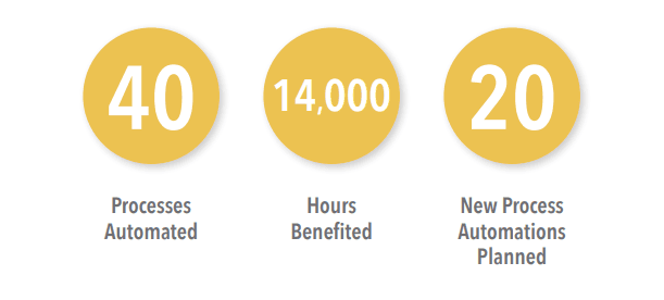 To date more than 40 processes have been automated returning more than 14,000 hours handing time saved annually back to the business.