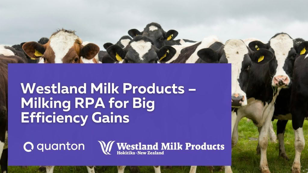 As one of New Zealand’s largest dairy processors, Westland Milk Products partnered with Quanton to build internal automation capability rather than external dependency. By deploying robots across accounts payable, sales order processing, and real-time shipping analysis, they achieved significant efficiency gains while upskilling their operations teams. This strategic investment allows them to scale global exports without increasing baseline costs